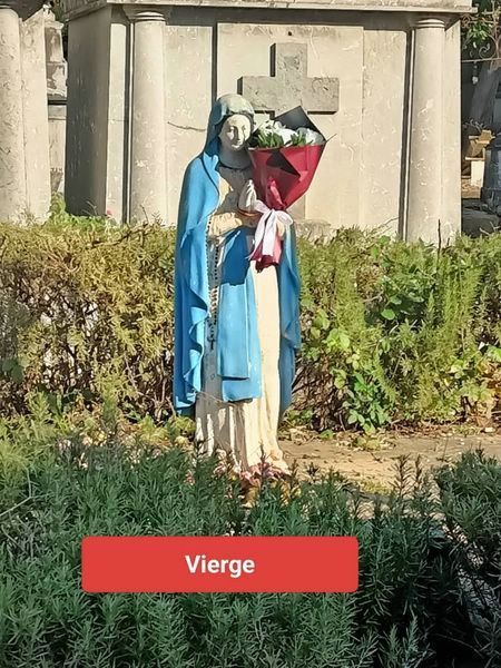 Deux photos ci-jointe la Vierge à l'entrée du cimetière et la Stèle dédiée à tous les morts.