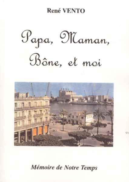 Commande l'ouvrage "Papa, Maman, Bône et moi" de René VENTO et verse la somme de 120 francs (prix de l'ouvrage commandé) plus 25 francs de frais d'envoi (plus 47 francs si recommandé) à l'ordre de "MÉMOIRE DE NOTRE TEMPS" J.P HOLLENDER B.P 6030 ? 34030 MONTPELLIER Cédex 01 qui vous remercie.