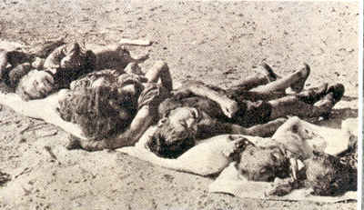 cadavres des victimes européennes sont alignés, sous le soleil, dans un silence