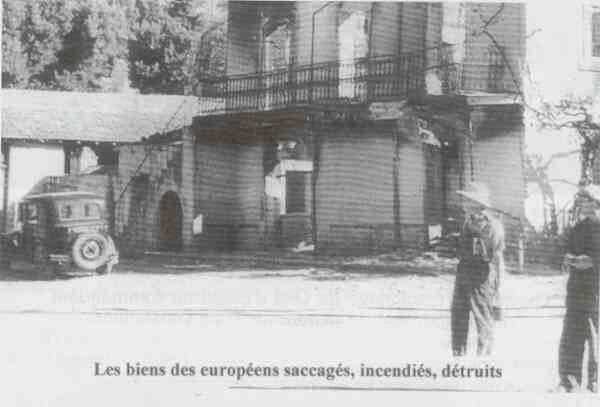 A la suite de cet échec, les émeutiers, laissant une partie des leurs à l'investissement de la brigade, se répandent dans le village et, par l'incendie, le pillage, sèment la dévastation complète. Rien n'est épargné, maison d'habitation, chapelle, docks, silos, tout ce qui rappelle une oeuvre française est soumis à un anéantissement méthodique. Les européens qui n'avaient pas eu le temps de rejoindre la caserne, sont massacrés sans pitié et, parmi eux une femme doit, avant de mourir, subir les pires outrages.