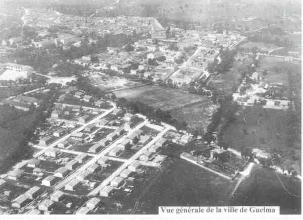 Guelma, sous préfecture d'environ 18.000 habitants à la fin de la deuxième guerre mondiale, avait comme garnison une compagnie du 3ème régiment de tirailleurs algériens, spécialisés à l'époque dans l'instruction des jeunes recrues et d'Alsaciens enrôlés de force dans l'armée allemande et ayant déserté afin de servir la France. La région de Guelma est essentiellement agricole, exceptée une mine de soufre proche d'Héliopolis, une de zinc à Nador et une carrière de marbre à la Mahouna.