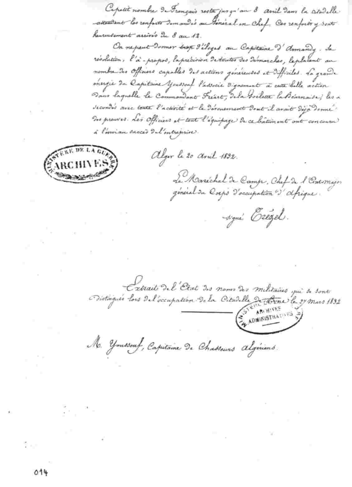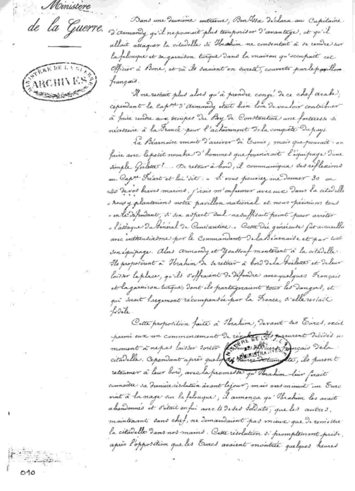 EXTRAIT de la relation sommaire des événements qui se sont passés à Bône, depuis la fin de l'année 1831 jusqu'au mois d'Avril 1832.