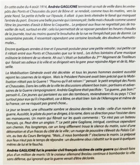 Tous les morts de 1914-1918 enregistrés sur le Département de Bône méritaient un hommage qui nous avait été demandé et avec Jean Claude Stella nous l'avons mis en oeuvre.