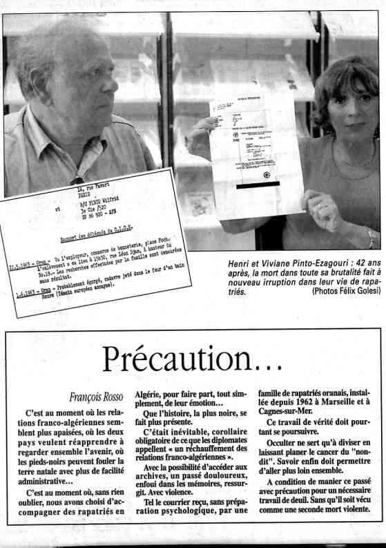 NDLR: Il faut que se soit les Algériens qui reconnaissent que le 1er mort de cette guerre civile était un jeune Pieds-Noirs qui a servi d'appât pour le déclenchement de l'insurection.