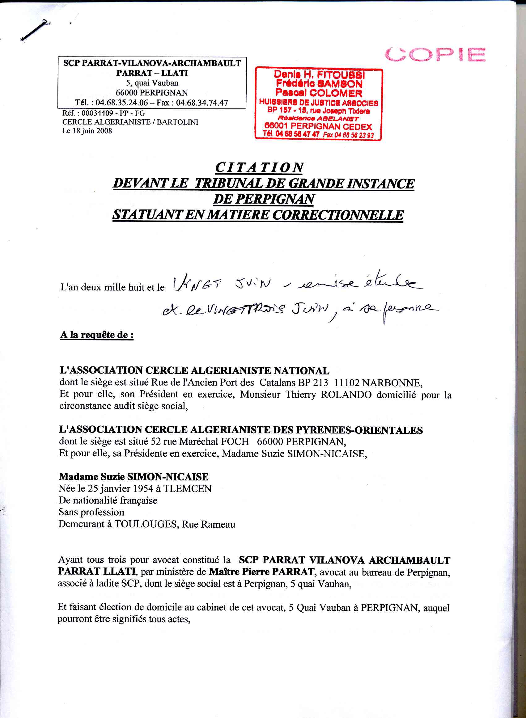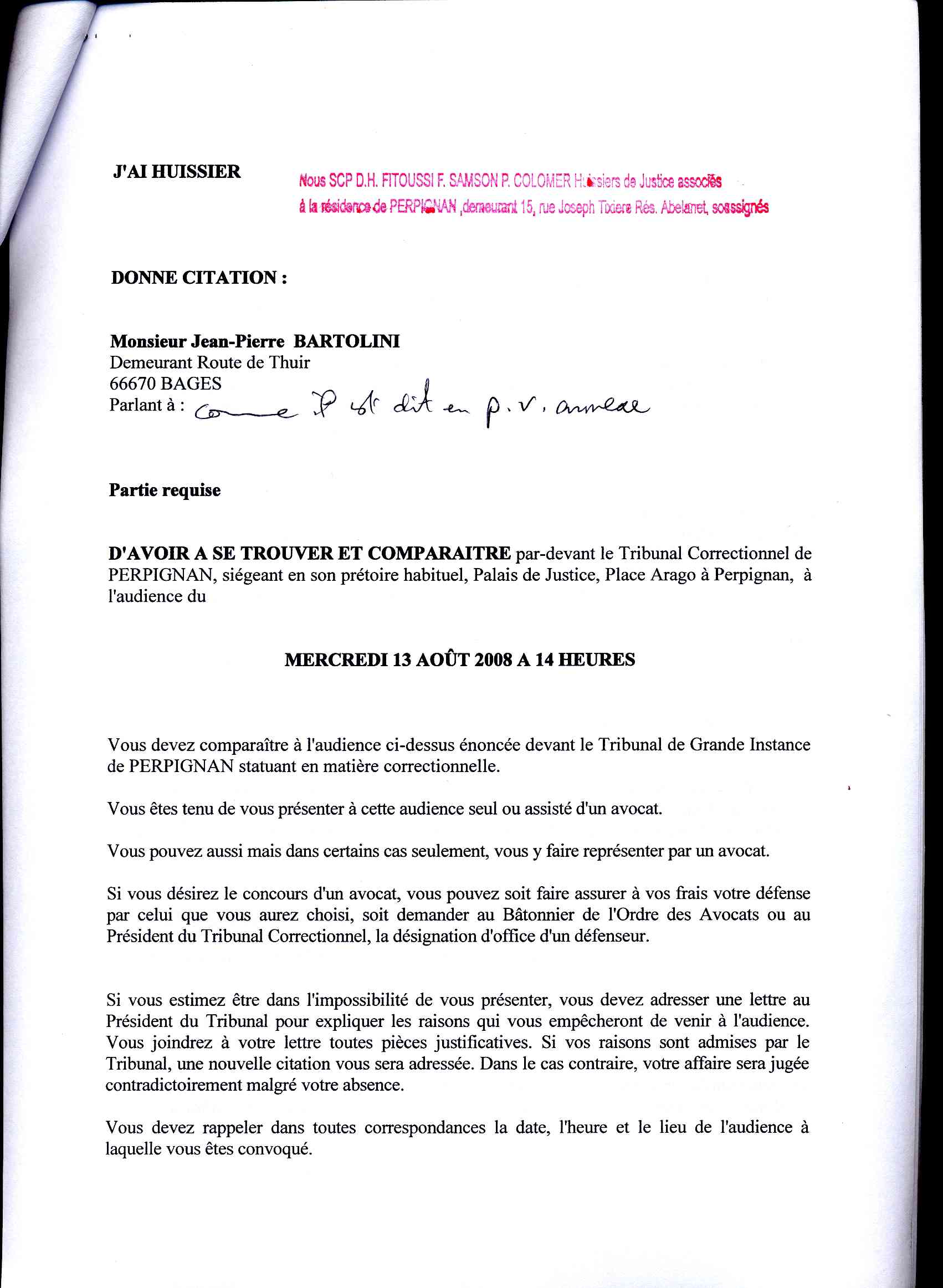 CITATION EN CORRECTIONNELLE