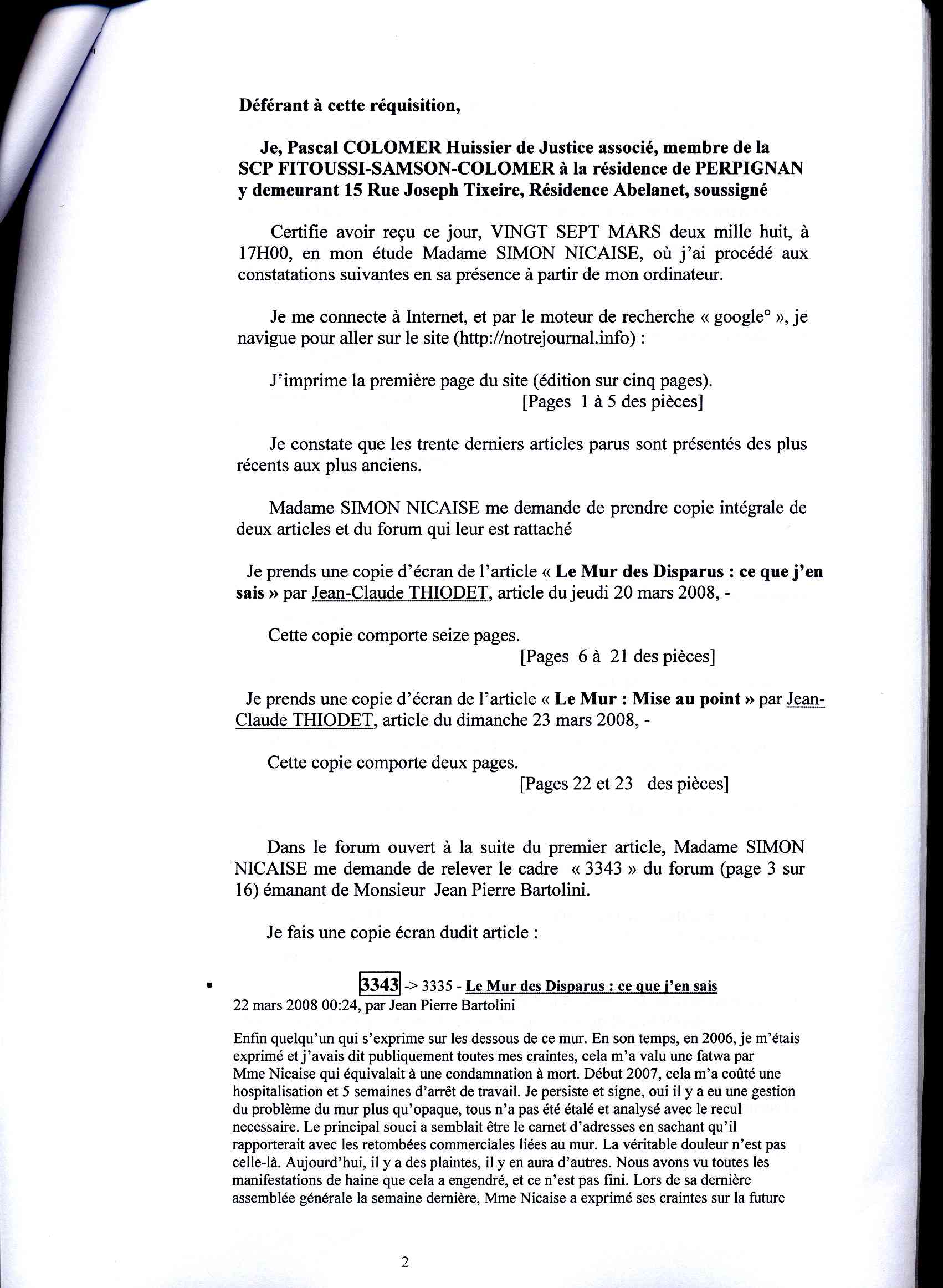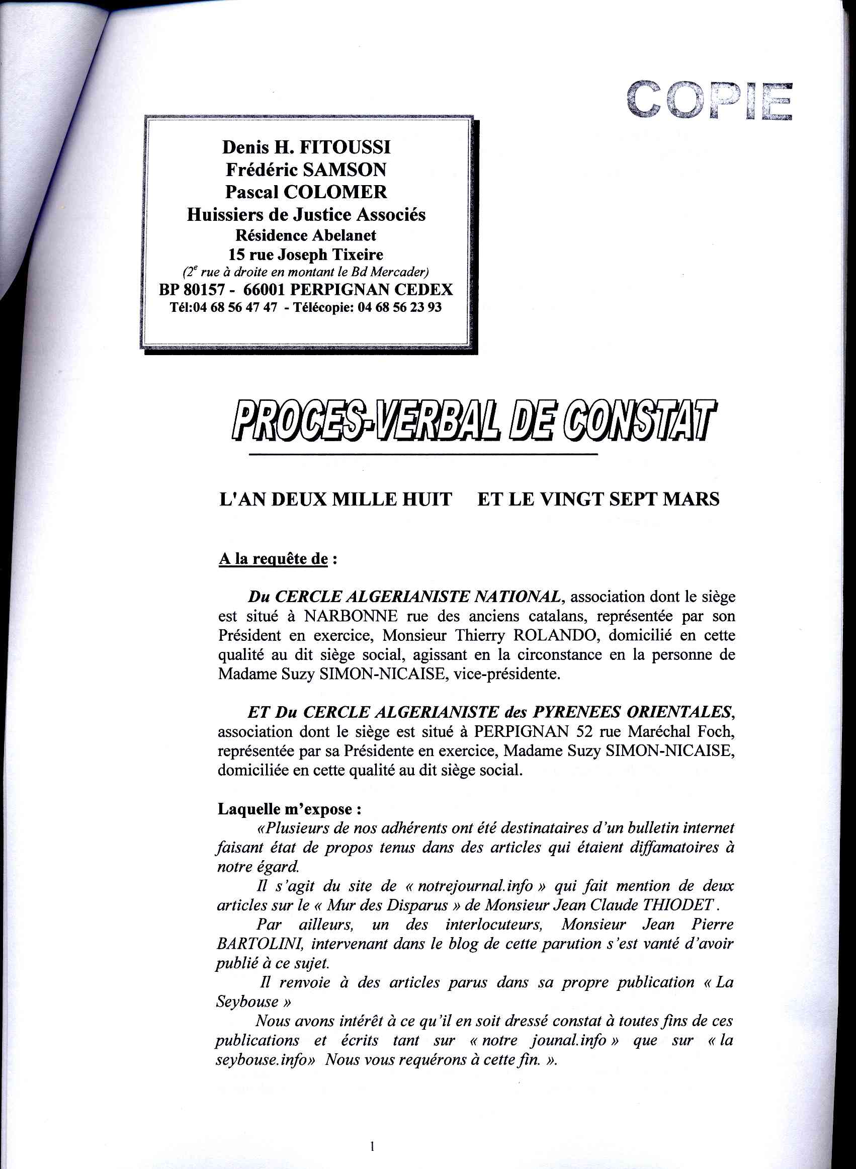 RAPPORT D'HUISSIER
